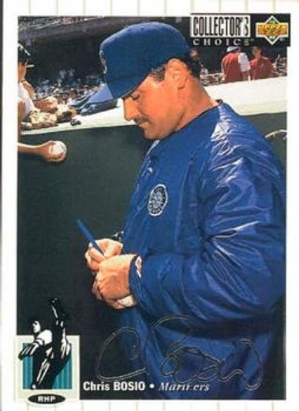 The Chris Bosio 1994 Upper Deck Collector's Choice #391 Silver Signatures card is 1 of 3 Chris Bosio's card variations in the 1994 Upper Deck Collector's Choice set being tracked by Sports Card Investor, including Base, and Gold Signatures.