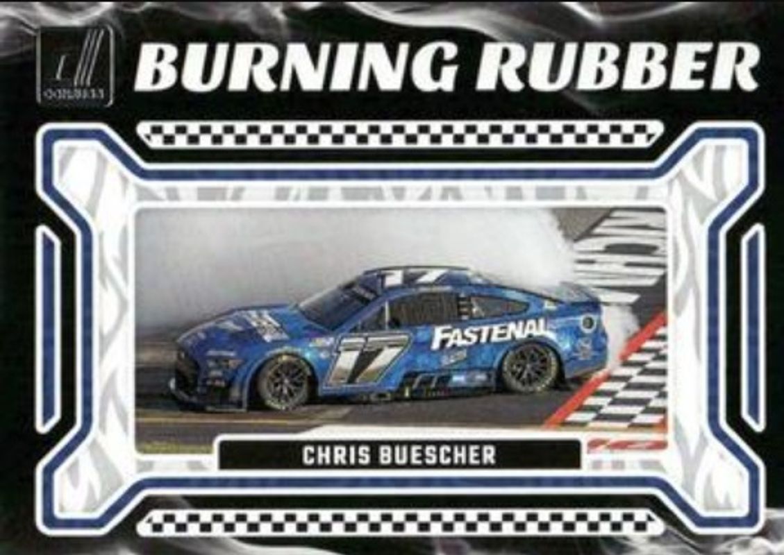 The Chris Buescher 2024 Donruss NASCAR #11 Burning Rubber card is 1 of 120 Chris Buescher's card variations in the 2024 Donruss NASCAR set being tracked by Sports Card Investor, including #45 Base, #173 Base, #87 Base, #87 Optic, and #45 Optic.