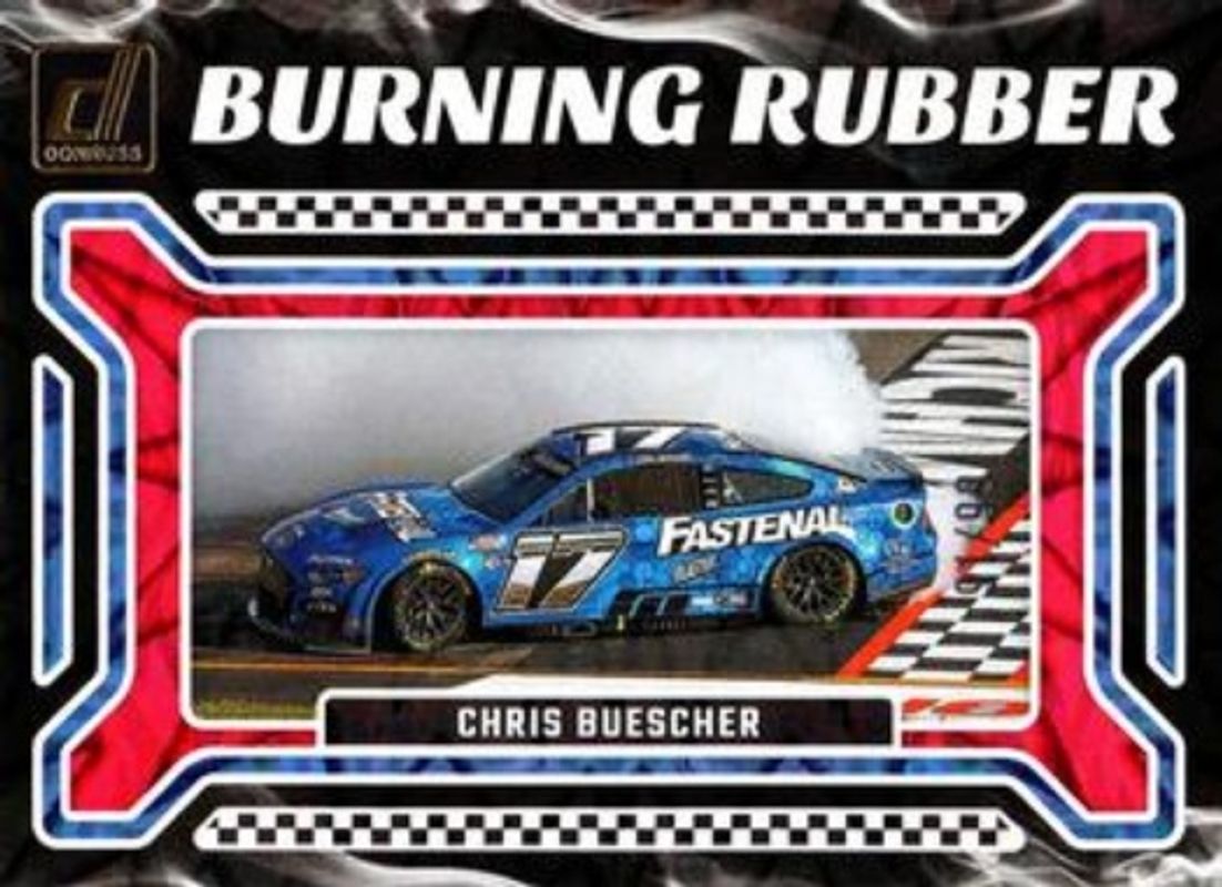The Chris Buescher 2024 Donruss NASCAR #11 Burning Rubber Red Xplosion /99 card is 1 of 120 Chris Buescher's card variations in the 2024 Donruss NASCAR set being tracked by Sports Card Investor, including #45 Base, #173 Base, #87 Base, #87 Optic, and #45 Optic.