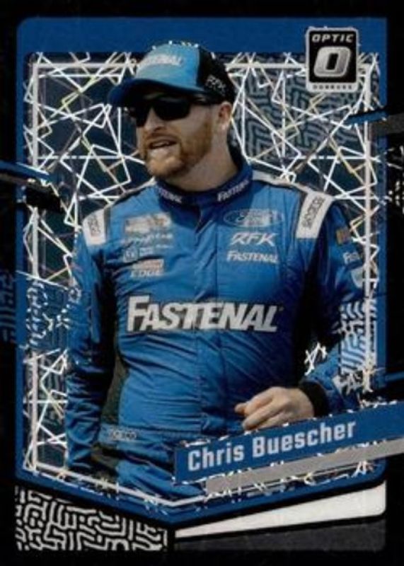 The Chris Buescher 2024 Donruss NASCAR #45 Optic Black Velocity /39 card is 1 of 120 Chris Buescher's card variations in the 2024 Donruss NASCAR set being tracked by Sports Card Investor, including #45 Base, #173 Base, #87 Base, #87 Optic, and #45 Optic.