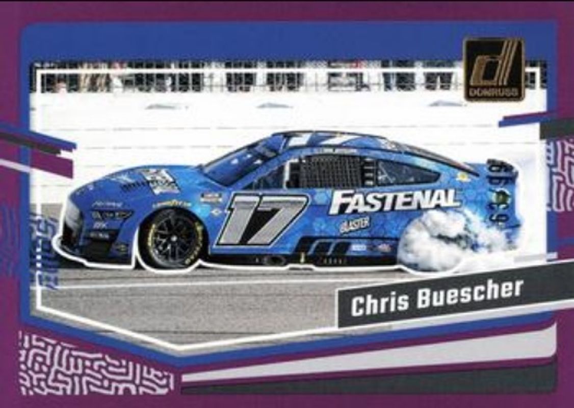 The Chris Buescher 2024 Donruss NASCAR #87 Purple /99 card is 1 of 120 Chris Buescher's card variations in the 2024 Donruss NASCAR set being tracked by Sports Card Investor, including #45 Base, #173 Base, #87 Base, #87 Optic, and #45 Optic.