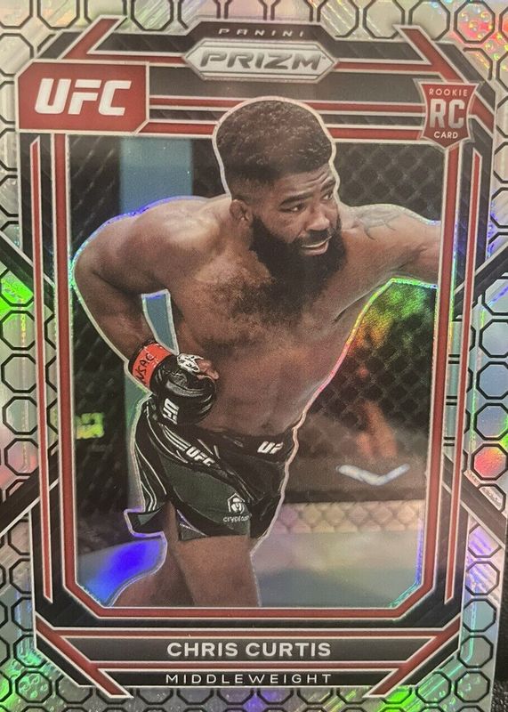 This card is 1 of 26 Chris Curtis' card variations in the 2023 Prizm UFC set being tracked by Sports Card Investor, including Base, Blue Wave, Green, Hyper, and Ice.