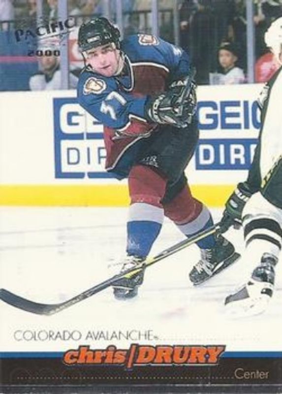 The Chris Drury 1999 Pacific #102 Base card is 1 of 8 Chris Drury's card variations in the 1999 Pacific set being tracked by Sports Card Investor, including Red, Emerald Green /199, Gold /199, Copper /99, and Ice Blue /75.