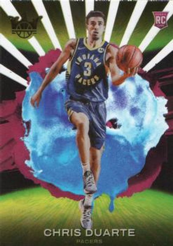 The Chris Duarte 2021 Court Kings #3 Acetate Rookies card is 1 of 40 Chris Duarte's card variations in the 2021 Court Kings set being tracked by Sports Card Investor, including #142 Base, #175 Base, #76 Base, #109 Base, and #76 Rookies I.