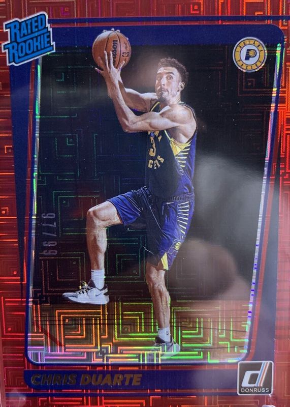 2021 Donruss Chris Duarte RC Rated Rookie Choice Red 18/99 #223 Indiana Pacers
