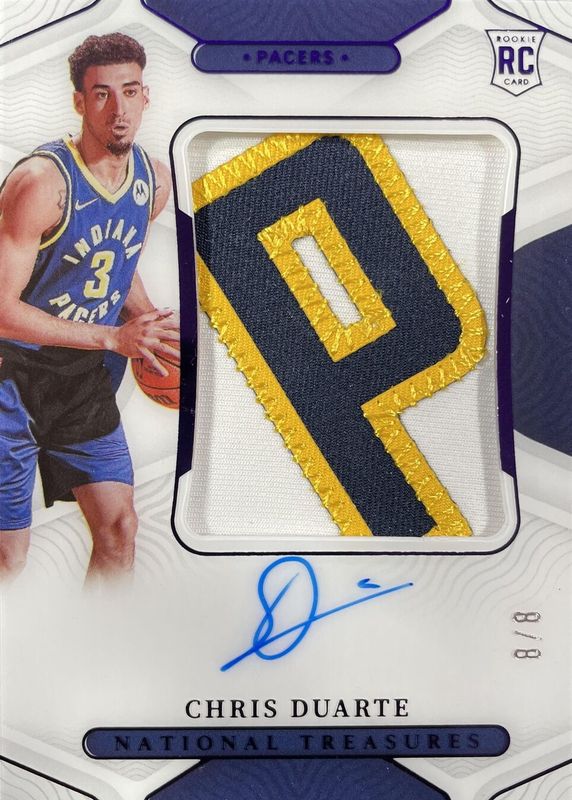 Chris Duarte 2021 National Treasures #117 Rookie Patch Auto - Purple FOTL /8 RAW Price Guide