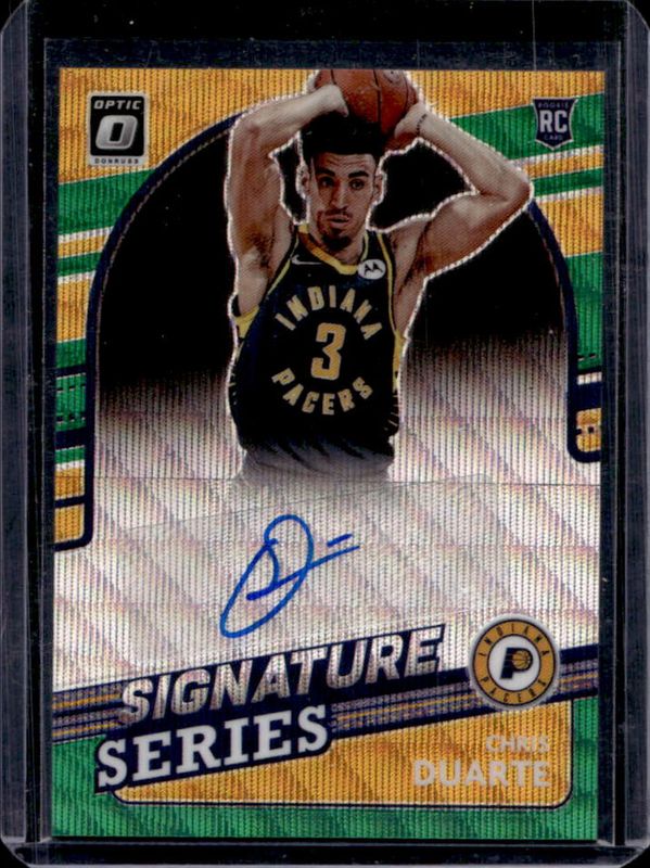 The Chris Duarte 2021 Optic #SS-CDT Signatures Series - Green Wave Rookie card is 1 of 82 Chris Duarte's card variations in the 2021 Optic set being tracked by Sports Card Investor, including Base, Blue Pulsar, Blue Velocity, Checkerboard, and Choice.