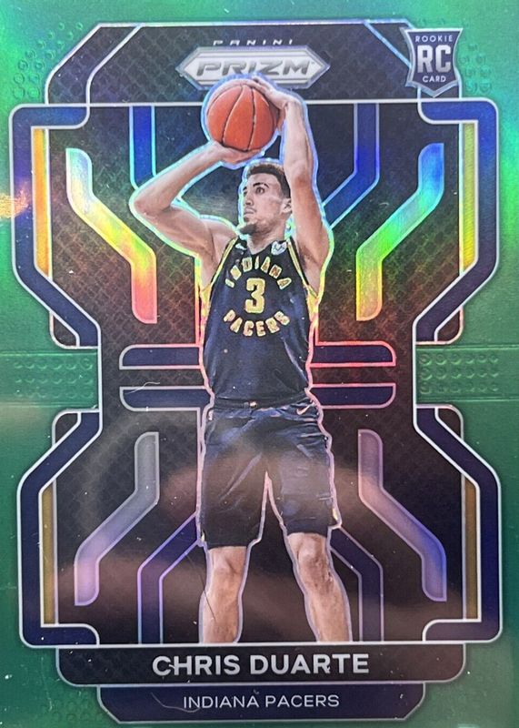2021-22 Panini Prizm Chris Duarte Green Prizm Rookie Card RC #315 Pacers