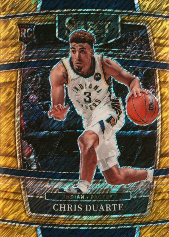The Chris Duarte 2021 Select #41 Concourse Gold Shimmer /10 Rookie card in Raw condition has not changed in price in the last 30 days and was last sold for $3.25 .