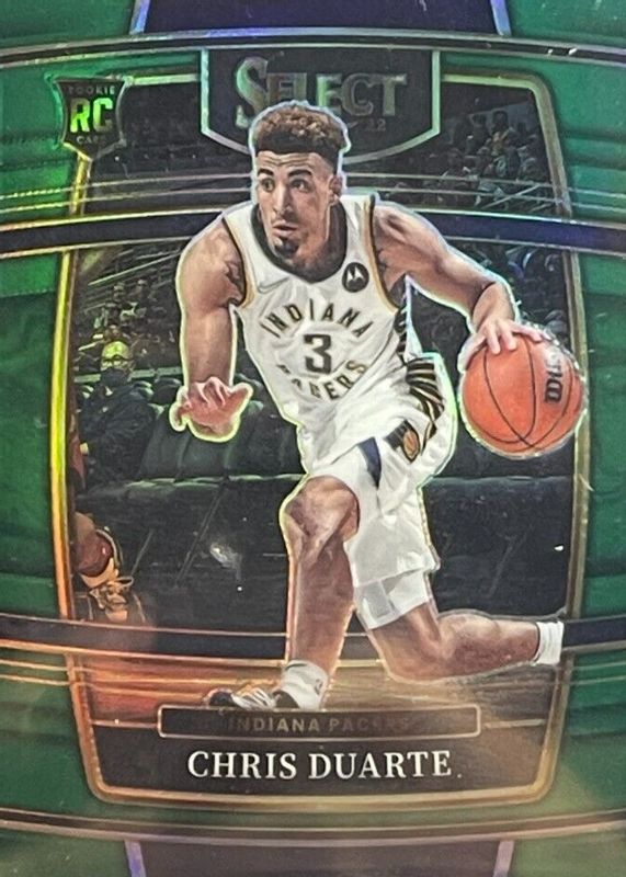 The Chris Duarte 2021 Select #41 Concourse Green /5 Rookie card in Raw condition has not changed in price in the last 30 days and was last sold for $35.00 .