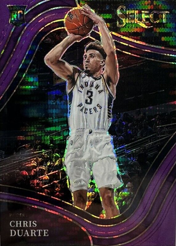 This card is 1 of 143 Chris Duarte's card variations in the 2021 Select set being tracked by Sports Card Investor, including Concourse, Concourse Green Ice, Concourse Green White Purple, Concourse Silver, and Courtside.