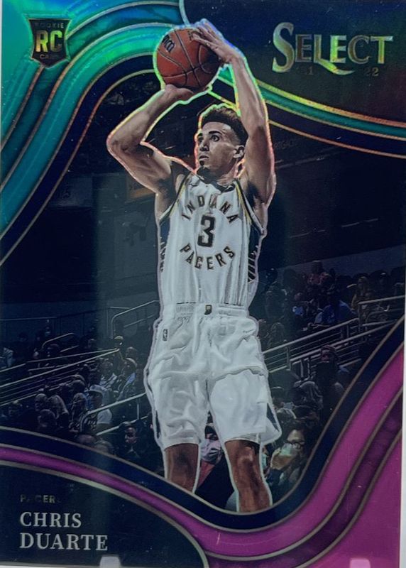 The Chris Duarte 2021 Select #220 Courtside Teal White Pink /49 Rookie card in Raw condition has not changed in price in the last 30 days and was last sold for $2.25 .