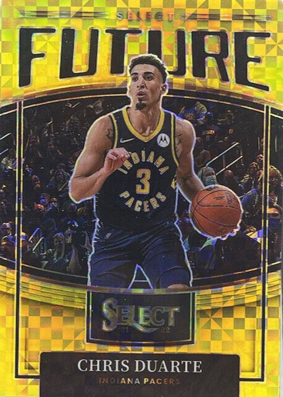 The Chris Duarte 2021 Select #26 Select Future - Gold /10 Rookie card in Raw condition has not changed in price in the last 30 days and was last sold for $10.50 .