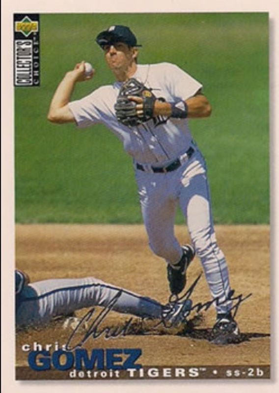 The Chris Gomez 1995 Upper Deck Collector's Choice #476 Gold Signatures card is 1 of 3 Chris Gomez's card variations in the 1995 Upper Deck Collector's Choice set being tracked by Sports Card Investor, including Base, and Silver Signatures.