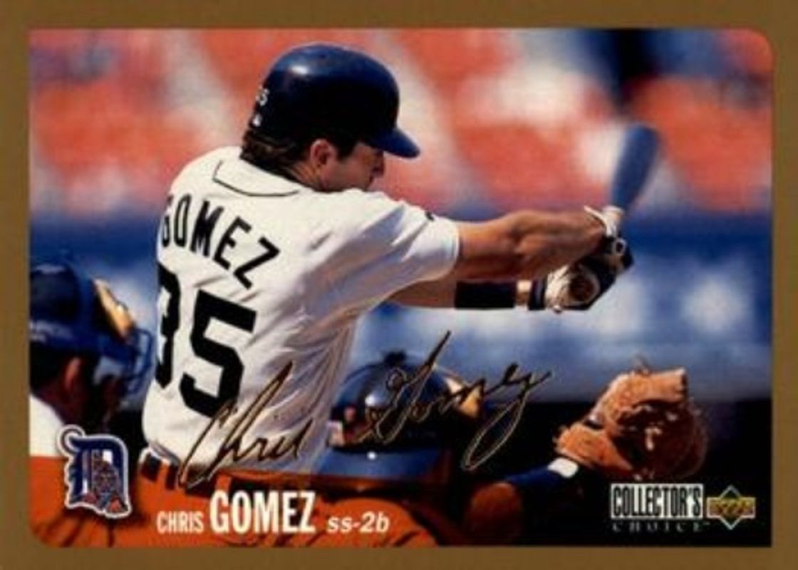 The Chris Gomez 1996 Upper Deck Collector's Choice #549 Gold Signatures card is 1 of 3 Chris Gomez's card variations in the 1996 Upper Deck Collector's Choice set being tracked by Sports Card Investor, including Base, and Silver Signatures.