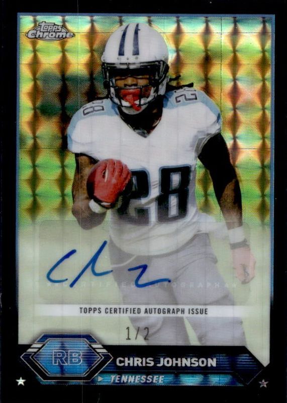The Chris Johnson 2023 Topps Composite #TCA-CJ Chrome Autographs - Geometric Black /2 card in Raw condition has not changed in price in the last 30 days and was last sold for $30.99 .