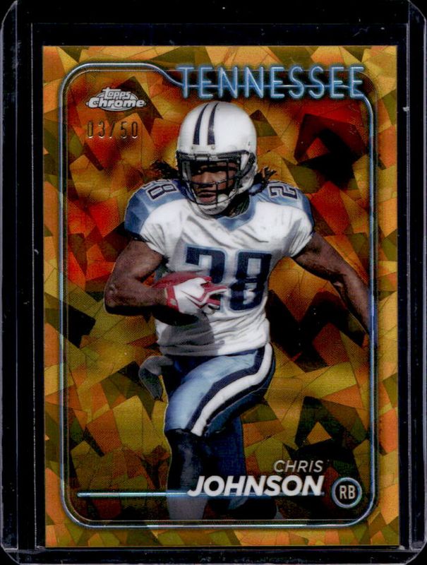 The Chris Johnson 2024 Topps Chrome Sapphire Edition #191 Gold /50 card is 1 of 12 Chris Johnson's card variations in the 2024 Topps Chrome Sapphire Edition set being tracked by Sports Card Investor, including Base, Orange /25, White /15, Purple /10, and Red /5.