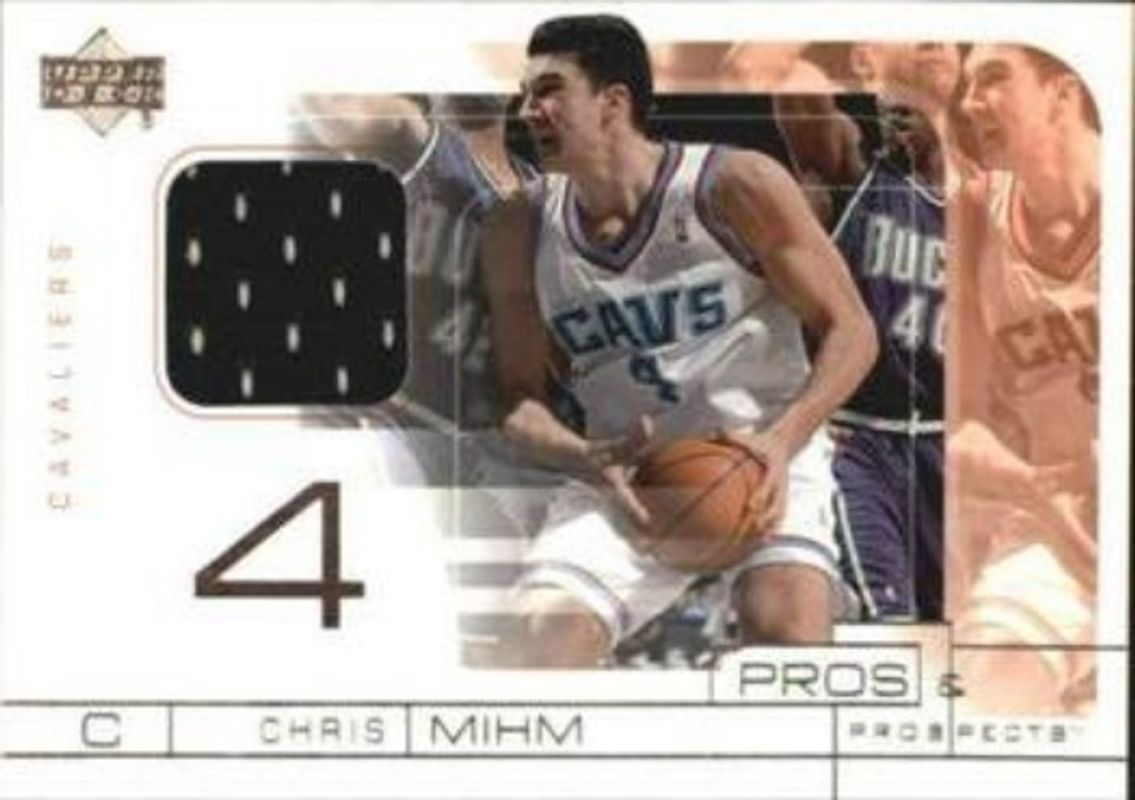 The Chris Mihm 2001 Upper Deck Pros & Prospects #CM Game Jerseys card is 1 of 5 Chris Mihm's card variations in the 2001 Upper Deck Pros & Prospects set being tracked by Sports Card Investor, including Base /1000, Game Jerseys Autographs, Game Jerseys Gold /75, and Game Jerseys Autographs Gold /50.