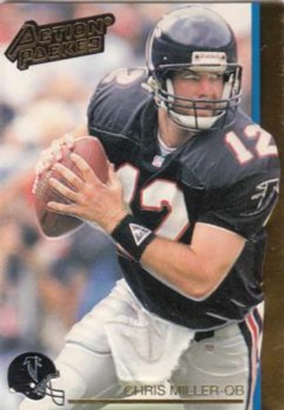 The Chris Miller 1992 Action Packed #4 Base card is 1 of 3 Chris Miller's card variations in the 1992 Action Packed set being tracked by Sports Card Investor, including Mint /500, and 24 Kt. Gold.