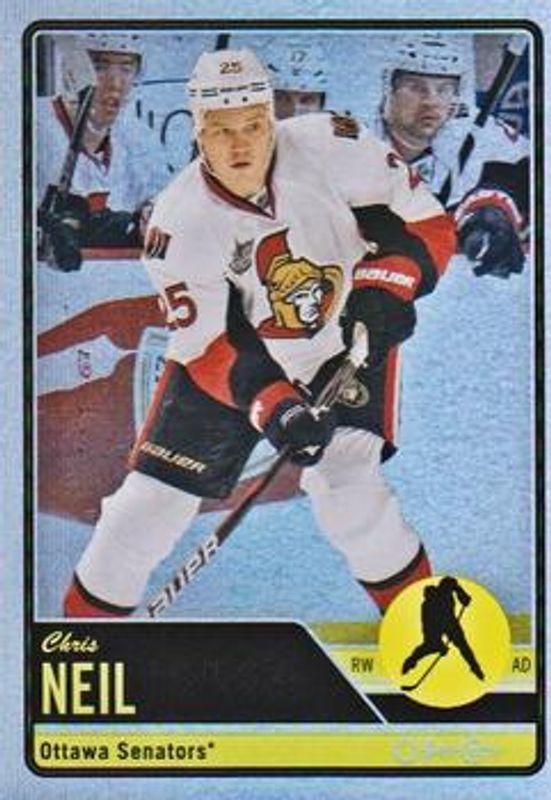 The Chris Neil 2012 O-Pee-Chee #427 Rainbow card is 1 of 6 Chris Neil's card variations in the 2012 O-Pee-Chee set being tracked by Sports Card Investor, including Base, Retro, Retro Blank Back, Black Rainbow /100, and Wrapper Redemption Red.