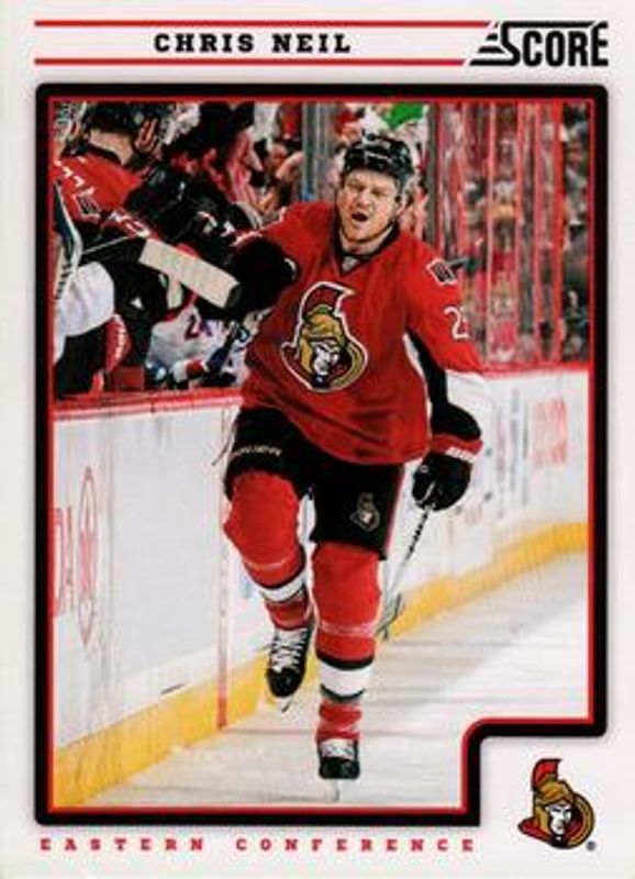The Chris Neil 2012 Score #338 Base card is 1 of 4 Chris Neil's card variations in the 2012 Score set being tracked by Sports Card Investor, including Black Ice, Gold Rush, and Check It.