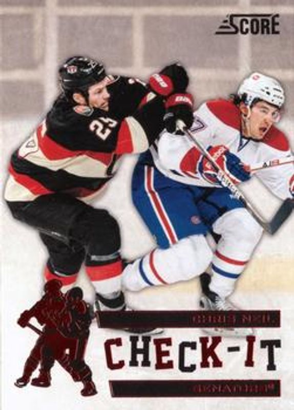 The Chris Neil 2012 Score #C20 Check It card is 1 of 4 Chris Neil's card variations in the 2012 Score set being tracked by Sports Card Investor, including Base, Black Ice, and Gold Rush.