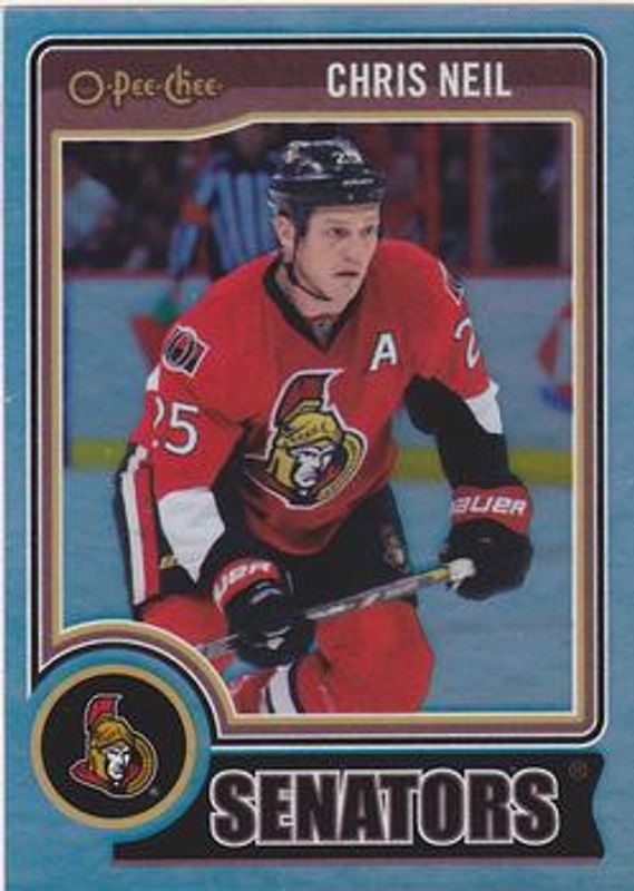 The Chris Neil 2014 O-Pee-Chee #208 Rainbow card is 1 of 6 Chris Neil's card variations in the 2014 O-Pee-Chee set being tracked by Sports Card Investor, including Base, Red, Retro, Retro Blank Backs, and Black Rainbow /100.
