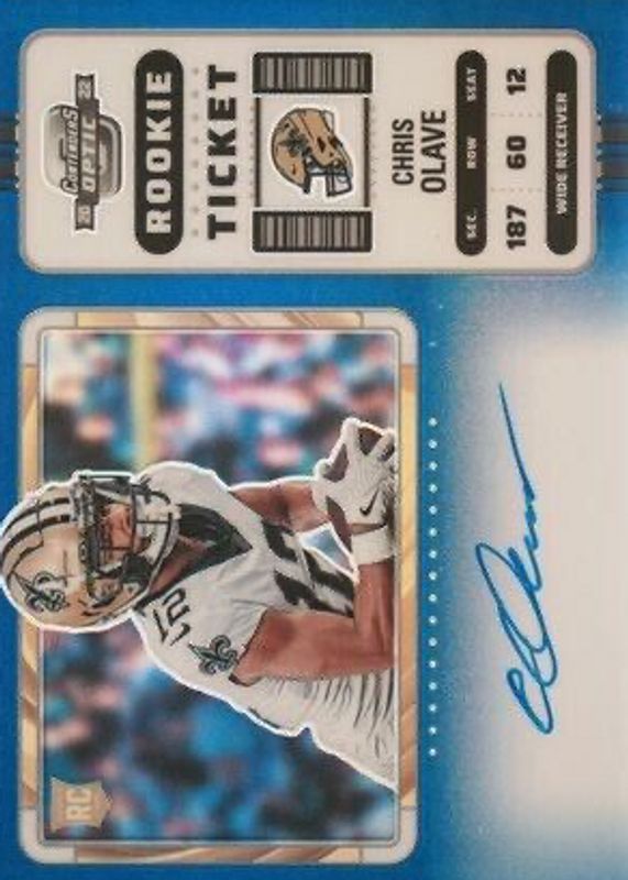 Best Prices Available For Sale of Chris Olave 2022 Contenders Optic #109 Rookie Ticket Auto Variation - Blue /25