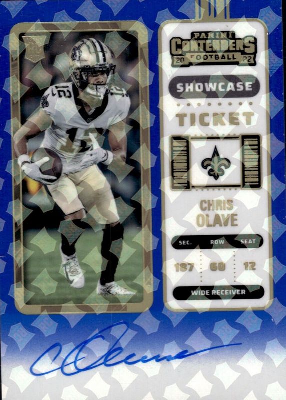2022 Contenders Showcase Ticket Chris Olave ROOKIE ON CARD AUTOGRAPH SAINTS BLUE