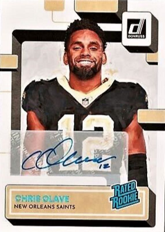 The Chris Olave 2022 Donruss #309 Rated Rookie Portrait Autographs /49 card in Raw condition has not changed in price in the last 30 days and was last sold for $39.00 .