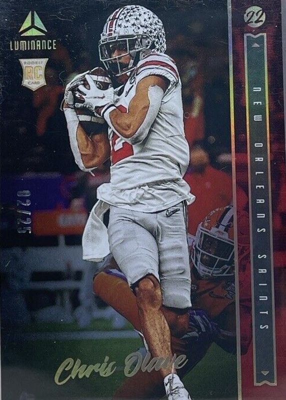 This card is 1 of 9 Chris Olave's card variations in the 2022 Luminance set being tracked by Sports Card Investor, including Base, Gold /249, Blue /149, Green /99, and Orange /50.