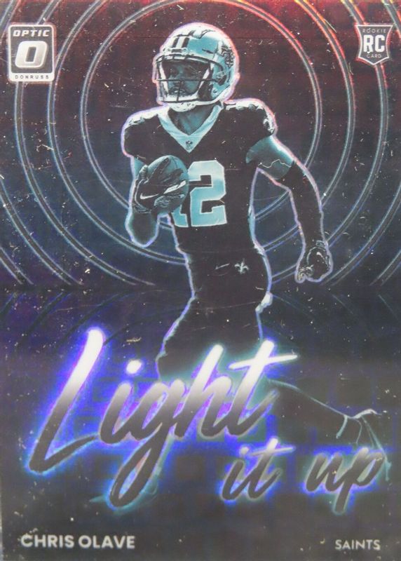The Chris Olave 2022 Optic #LU-13 Light It Up - Purple Stars /25 Rookie card in Raw condition has not changed in price in the last 30 days and was last sold for $16.99 .