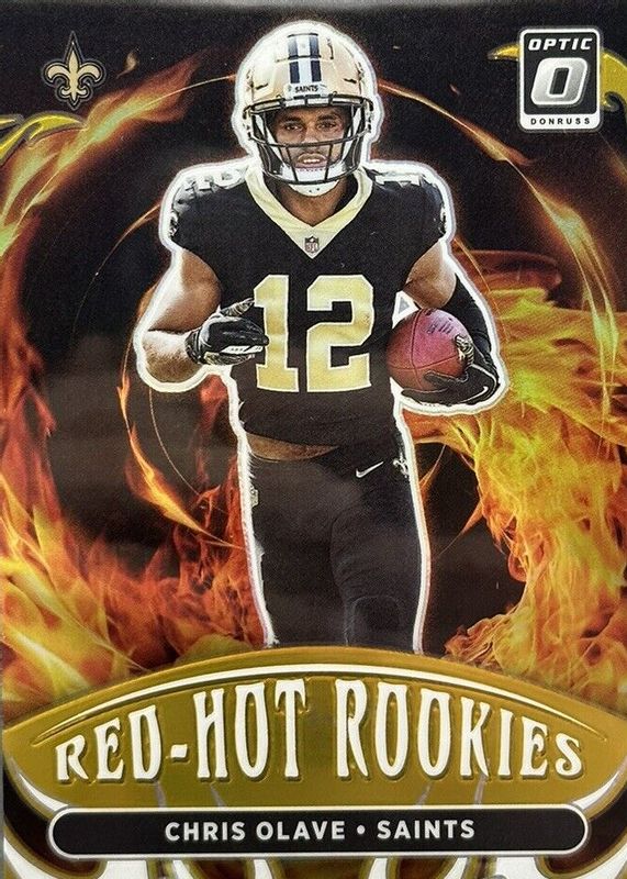 The Chris Olave 2022 Optic #RHR-4 Red Hot Rookies - Gold /10 card in Raw condition has not changed in price in the last 30 days and was last sold for $55.00 .