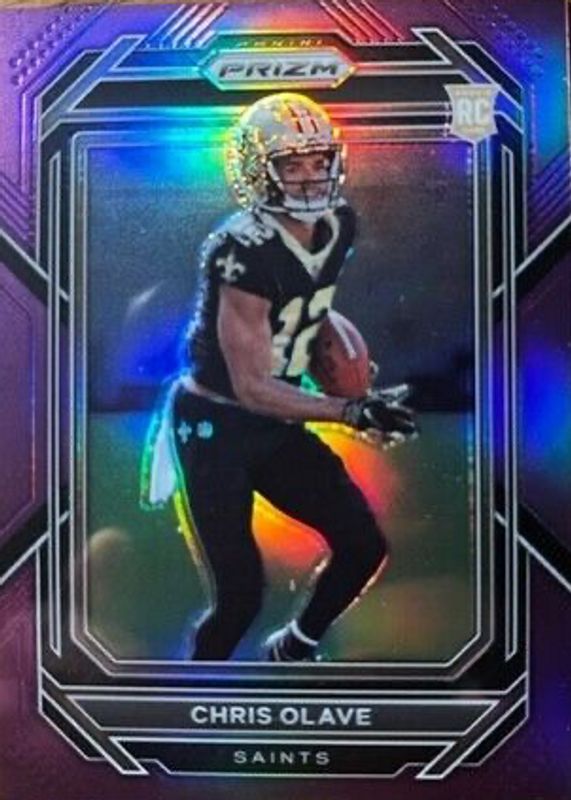 The Chris Olave 2022 Prizm #310 Purple /125 Rookie card in Raw condition has not changed in price in the last 30 days and was last sold for $20.00 .
