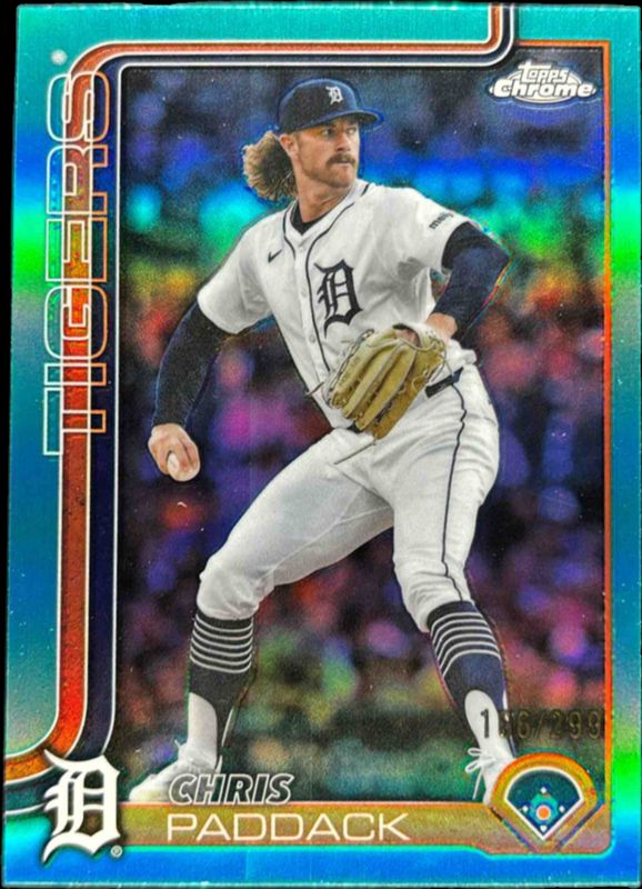 The Chris Paddack 2025 Topps Chrome Update #USC10 Teal Refractor /299 card is 1 of 52 Chris Paddack's card variations in the 2025 Topps Chrome Update set being tracked by Sports Card Investor, including Base, Geometric Refractor, Negative Refractor, Prism Refractor, and RayWave Refractor.