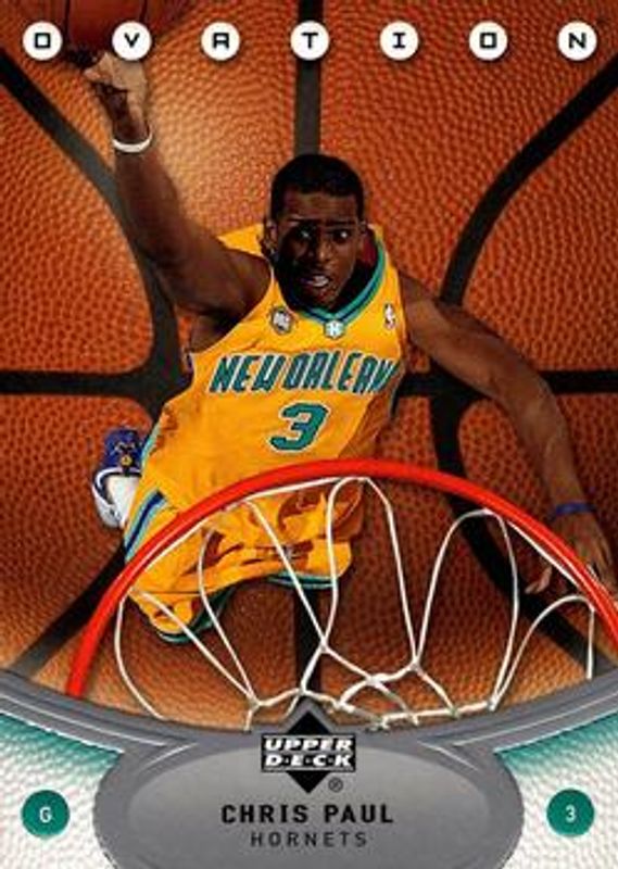 The Chris Paul 2006 Upper Deck Ovation #53 Base /999 card is 1 of 5 Chris Paul's card variations in the 2006 Upper Deck Ovation set being tracked by Sports Card Investor, including Gold /99, Leading Performers, Spotlight Signatures, and Spotlight Signatures Gold /25.