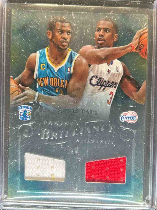 The Chris Paul 2012 Brilliance #4 City to City Jerseys card is 1 of 9 Chris Paul's card variations in the 2012 Brilliance set being tracked by Sports Card Investor, including Base, Above and Beyond, Starburst, Artist's Proof /10, and Game Time Jerseys.