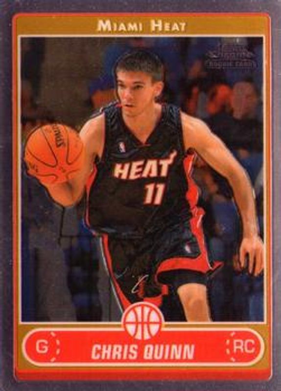 The Chris Quinn 2006 Topps Chrome #181 Base Rookie card is 1 of 14 Chris Quinn's card variations in the 2006 Topps Chrome set being tracked by Sports Card Investor, including Framed Press Plates Black /1, Framed Press Plates Cyan /1, Framed Press Plates Magenta /1, Framed Press Plates Yellow /1, and Autographs - Black Refractor.