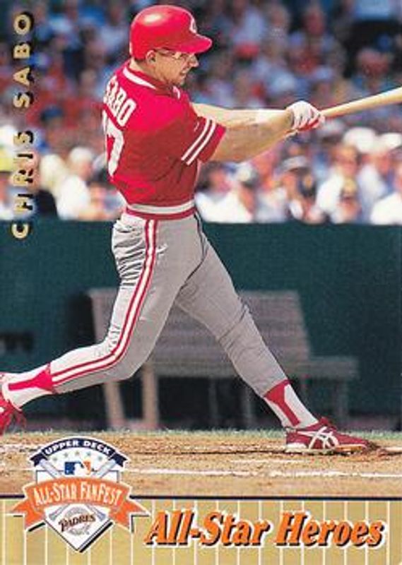 The Chris Sabo 1992 Upper Deck All-Star FanFest #38 Gold card is 1 of 2 Chris Sabo's card variations in the 1992 Upper Deck All-Star FanFest set being tracked by Sports Card Investor, including Base.