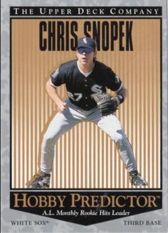 The Chris Snopek 1996 Upper Deck #H29 Predictors: Hobby Rookie card is 1 of 4 Chris Snopek's card variations in the 1996 Upper Deck set being tracked by Sports Card Investor, including Base, Future Stock Prospects, and Predictors Exchange: Hobby.