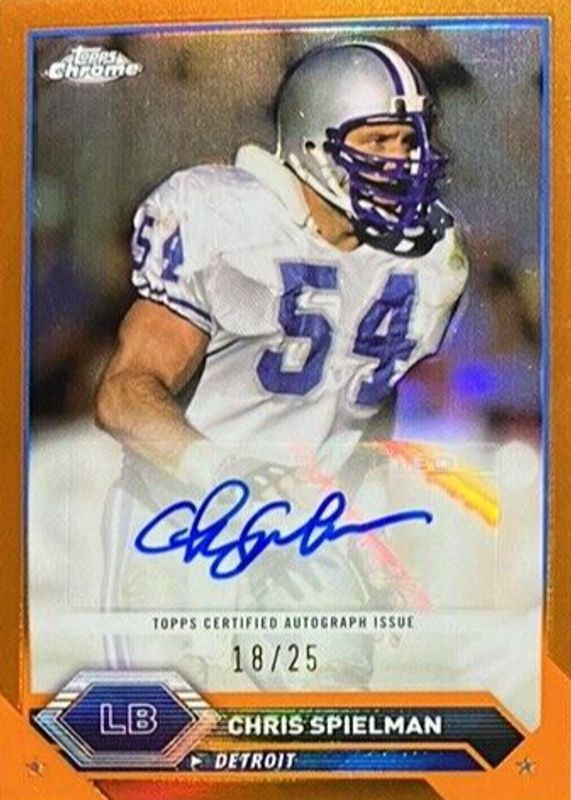 2023 Topps Chrome Composite Chris Spielman Orange Refractor Auto /25 Lions
