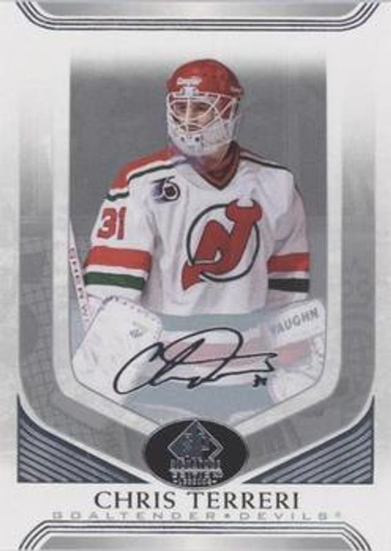 The Chris Terreri 2020 SP Signature Edition Legends #290 Silver Script card is 1 of 7 Chris Terreri's card variations in the 2020 SP Signature Edition Legends set being tracked by Sports Card Investor, including Base /99, Gold Foil, Gold Spectrum Foil Autographs /25, Black /10, and UD Canvas Legends.