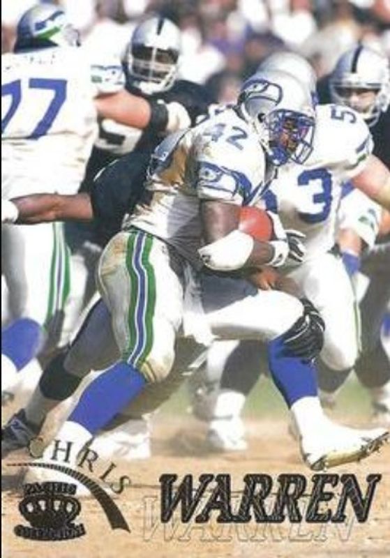 The Chris Warren 1996 Pacific Gridiron #119 Gold card is 1 of 8 Chris Warren's card variations in the 1996 Pacific Gridiron set being tracked by Sports Card Investor, including Base, Copper, Platinum, Red, and Driving Forces.