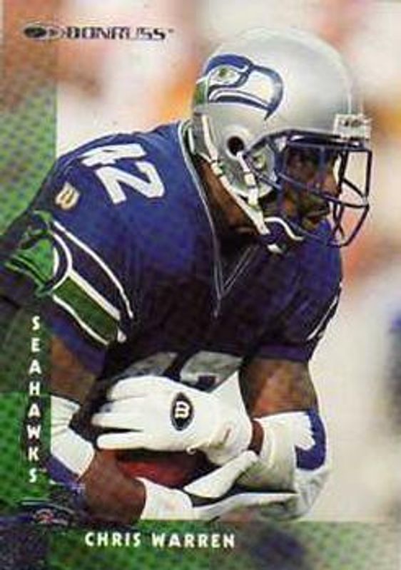 The Chris Warren 1997 Donruss #46 Base card is 1 of 3 Chris Warren's card variations in the 1997 Donruss set being tracked by Sports Card Investor, including Press Proof Gold Die-Cut, and Press Proof Silver.