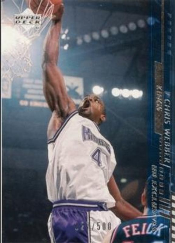 The Chris Webber 2000 Upper Deck #143 UD Exclusives Silver /100 card is 1 of 10 Chris Webber's card variations in the 2000 Upper Deck set being tracked by Sports Card Investor, including #143 Base, #413 Base, #413 UD Exclusives Silver /100, #AS3 All Star Class, and #G3 Graphic Jam.