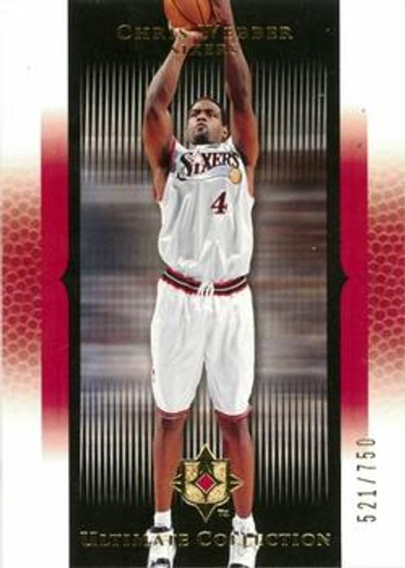 The Chris Webber 2005 Upper Deck Ultimate Collection #98 Base /750 card is 1 of 4 Chris Webber's card variations in the 2005 Upper Deck Ultimate Collection set being tracked by Sports Card Investor, including Blue /125, Red /50, and Silver /25.