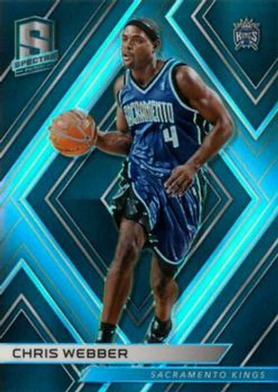 The Chris Webber 2017 Spectra #96 Silver card is 1 of 17 Chris Webber's card variations in the 2017 Spectra set being tracked by Sports Card Investor, including Base, Epic Legends /149, Epic Legends - Neon Blue /99, Neon Blue /99, and Red /75.