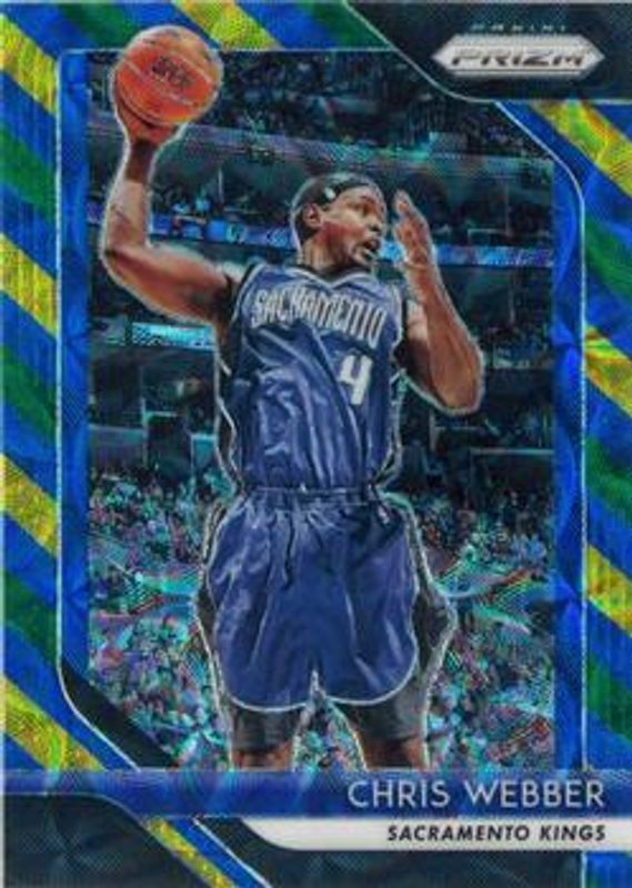 The Chris Webber 2018 Prizm #165 Choice Blue Yellow Green card is 1 of 30 Chris Webber's card variations in the 2018 Prizm set being tracked by Sports Card Investor, including Fast Break, Green, Pink Ice, Red Ice, and Red White Blue.