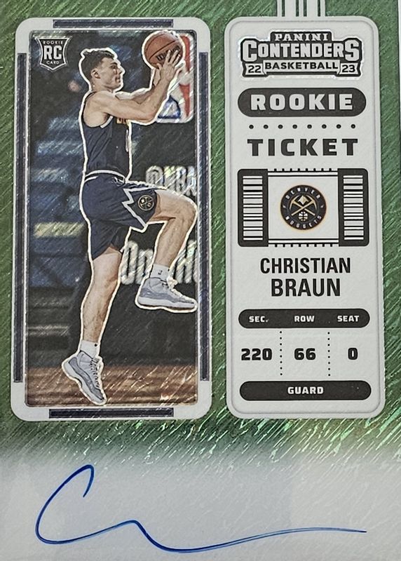 2022 Contenders #106 Christian Braun Rookie Ticket-Auto Green Shimmer!