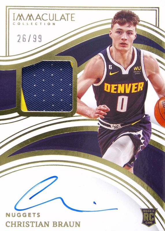 2022-23 Panini Immaculate Christian Braun Rookie Patch Auto #’d /99 Nuggets